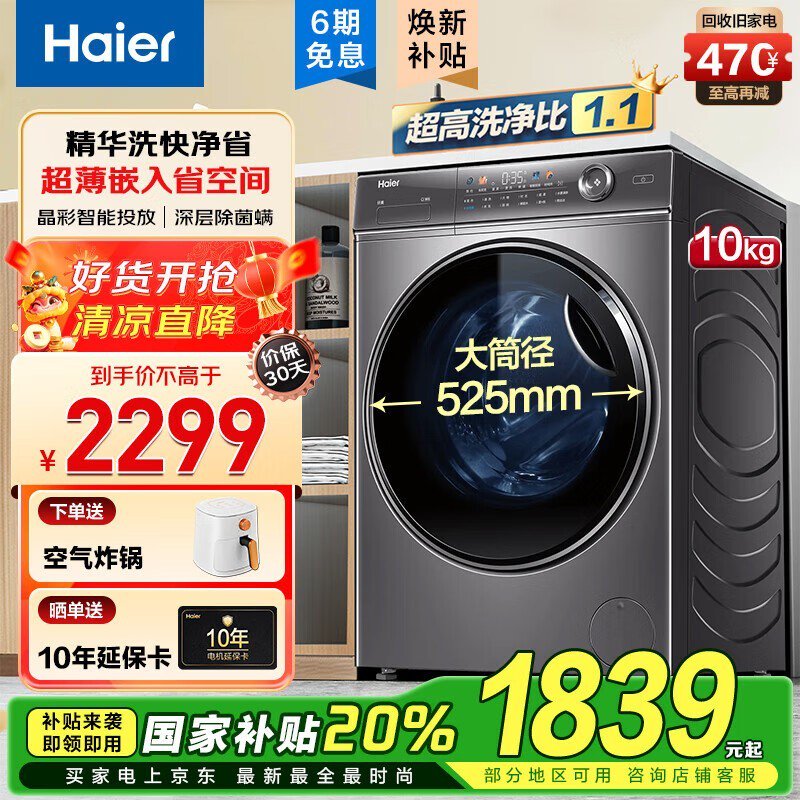 海尔10kg滚筒洗衣机,多种优惠后1665元