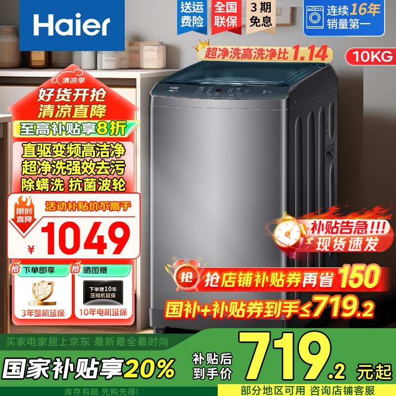 海尔Haier XQB100 - BZ506全自动波轮洗衣机超值价799元