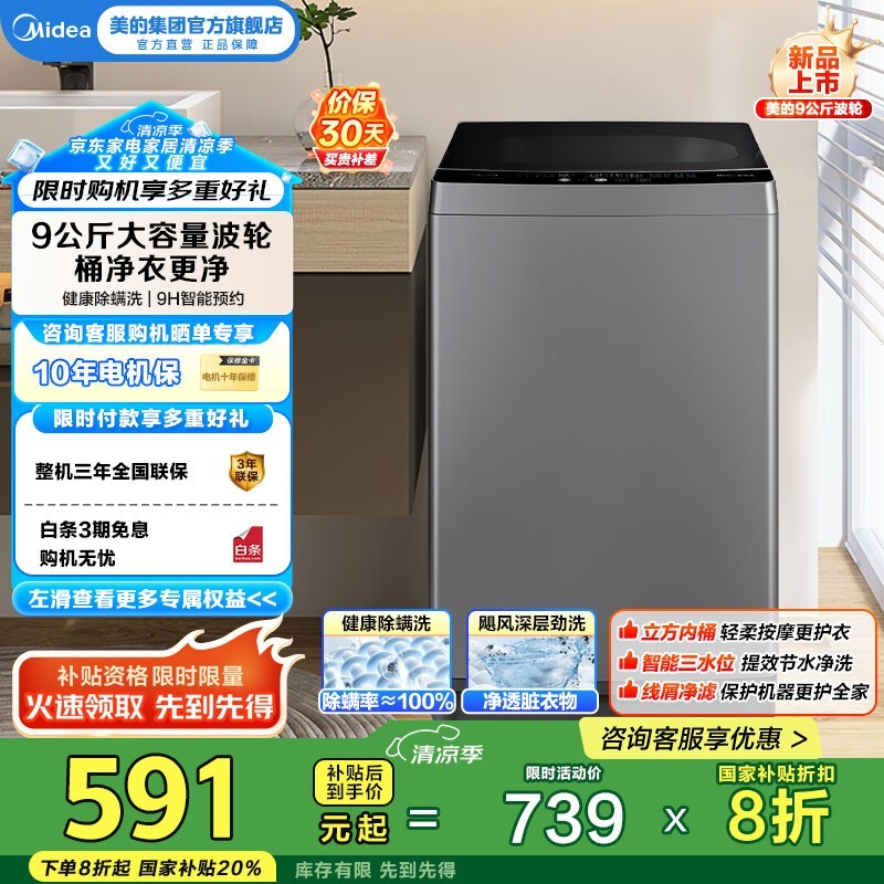 美的MB90V33B洗衣机,京东下单低至400元