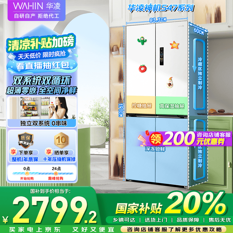 华凌547冰箱京东优惠,2639元可入手