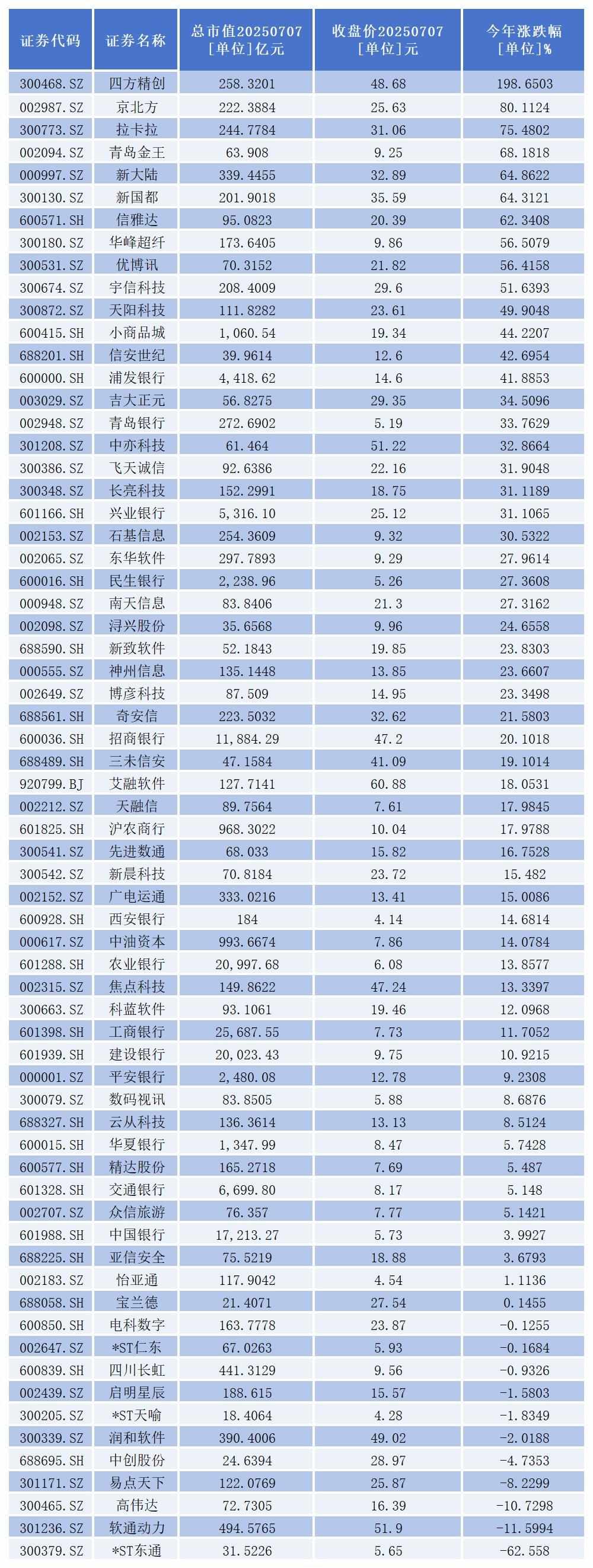 从二级市场表现看,今年以来,股价涨幅超过50%的有10家上市公司,具体包括四方精创、京北方、拉卡拉、青岛金王、新大陆、新国都、信雅达、华峰超纤、优博讯、宇信科技。