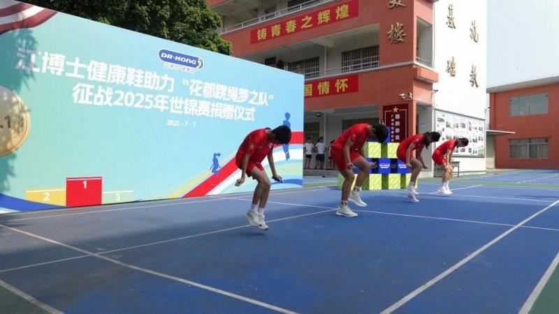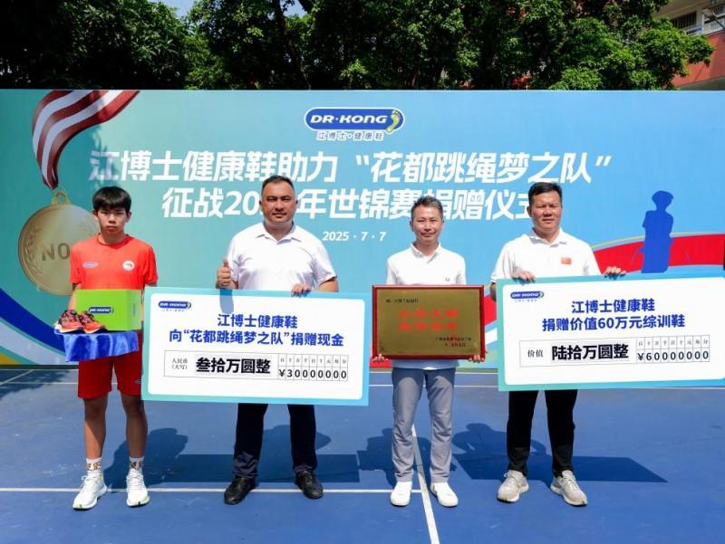 2025年世界跳绳锦标赛(简称“跳绳世锦赛”)即将开幕,花都跳绳梦之队整装待发。7月7日,江博士健康鞋助力“花都跳绳梦之队”征战2025跳绳世锦赛捐赠仪式在广州举行。江博士健康鞋向花都跳绳梦之队捐赠30万元现金及价值60万元的综训鞋,助力队伍备战世锦赛及人才培养。江博士健康鞋创始人及总裁江炳霖先生表示,将持续以科技创新推动中国体育事业发展。当天,广州市花都区花东学校党总支副书记、副校长赖宣治,江博士健康鞋足部产品研发及应用中心总监梁嘉荣,以及中国跳绳国家队广州市花都区代表队共同出席了活动。
