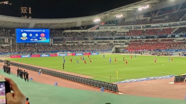 体育场两侧端屏,清晰展现赛事实时状况