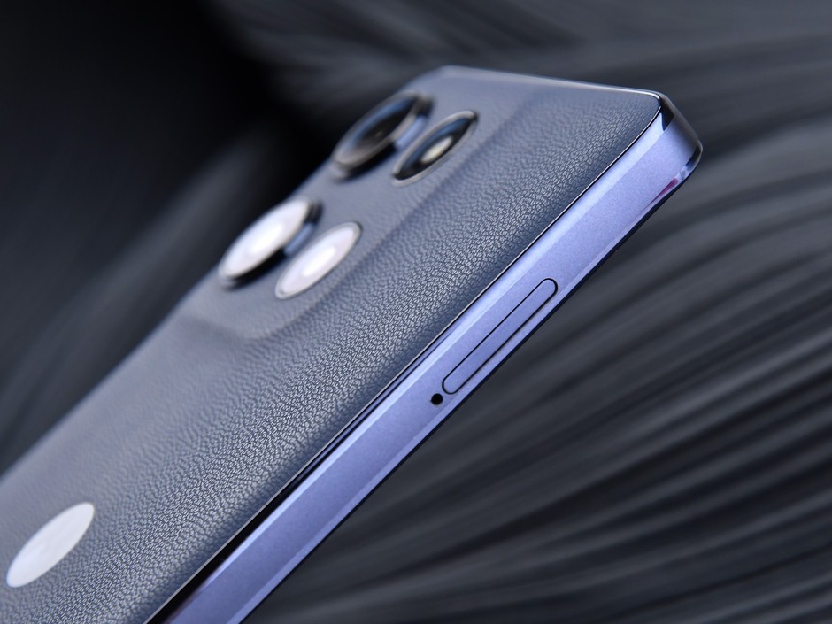 作为g系列的新成员,联想moto g100 Pro延续了品牌一贯的简洁设计风格,并在细节和配色上引入更具个性的表达。联想moto与Pantone再次合作,带来了多款高定配色供用户选择。这次上手的是“松烟蓝”配色,整体呈现出一种淡雅的蓝灰调,在不同光线下会有轻微的冷暖变化,带来一种克制且有层次的视觉体验。它的背部采用了空气纳米皮,既有自然的纹理,也兼顾手感与耐用性,实际摸上去确实有点类似细腻的皮革,不易沾指纹,握持时也不会打滑,对日常不太爱戴壳的用户来说也比较友好。