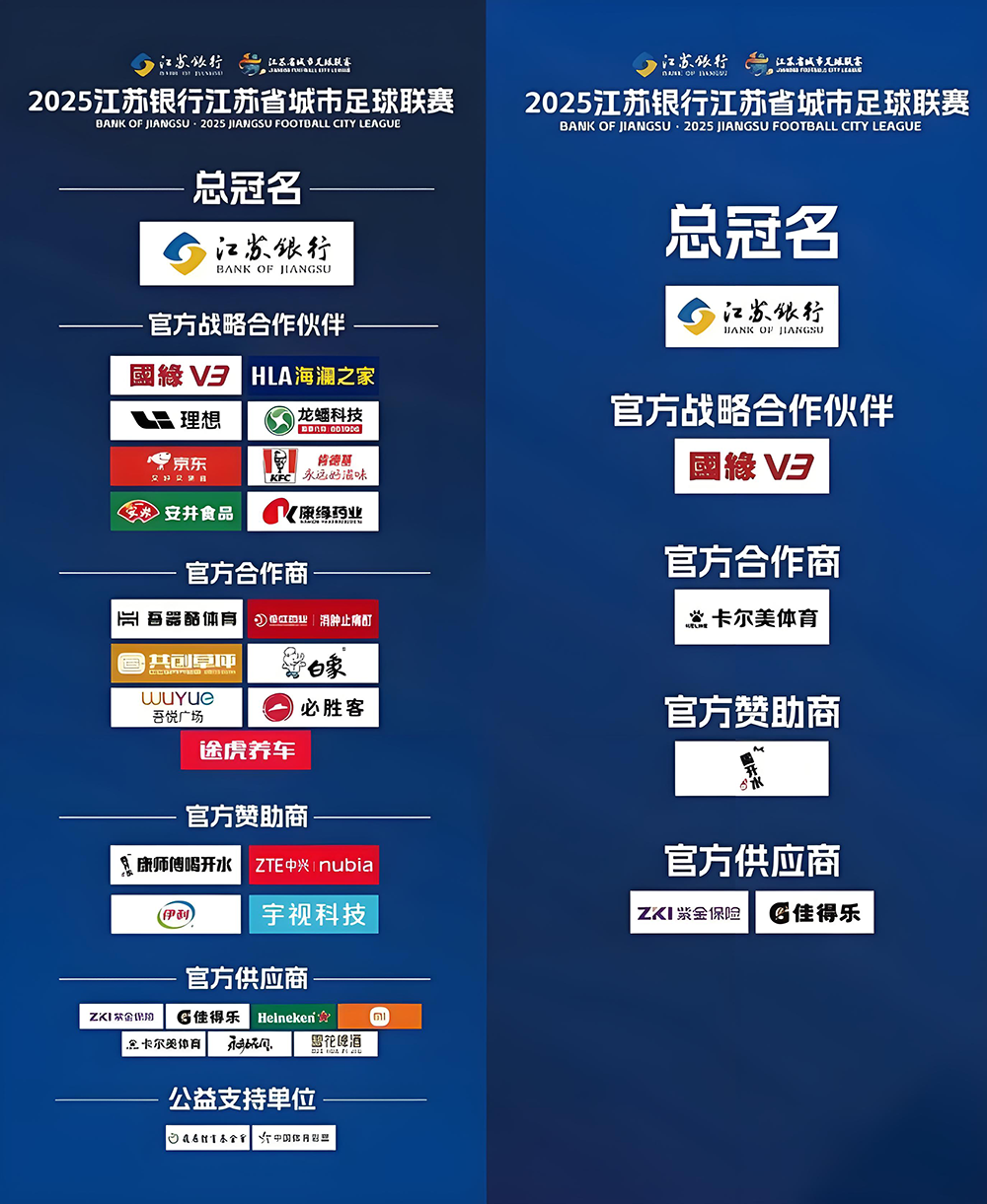 不仅球迷热情高涨,品牌赞助热度也水涨船高。官方数据显示,本赛季苏超官方赞助席位价格已飙升至300万元,“一席难求”的背后,是品牌对这一本地化、高参与、高粘性赛事的青睐。截至目前,赞助商数量从最初的6家飙升至29家,京东、支付宝、淘宝等头部品牌纷纷入局,而在这些名字中,家电行业的身影尤为活跃。