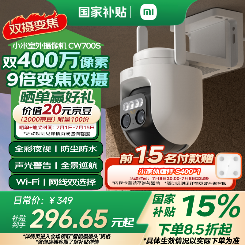 小米CW700S室外摄像机限时特惠,立减1.74元+云闪付补贴