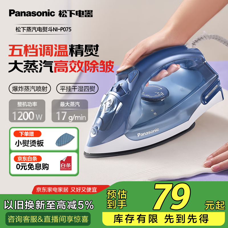 松下Panasonic电熨斗家用1200W大功率手持挂烫机限时特惠
