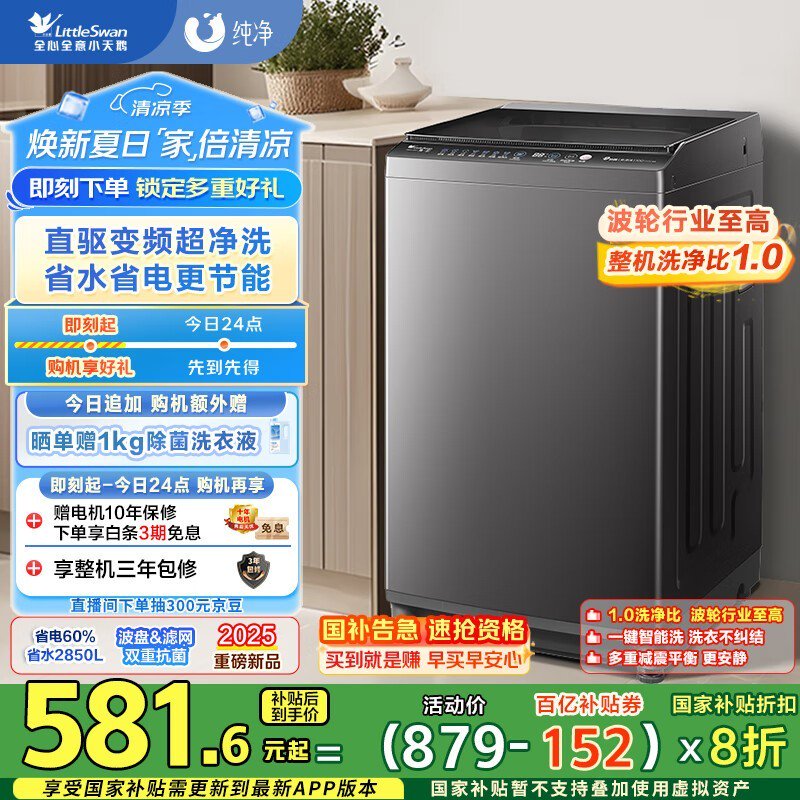 小天鹅波轮洗衣机8公斤大容量节能静音智能控制京东特惠价577元
