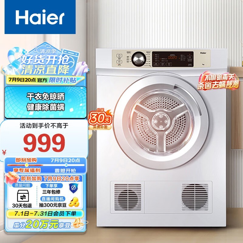 海尔EGDZE7F 7公斤滚筒烘干机促销价806元