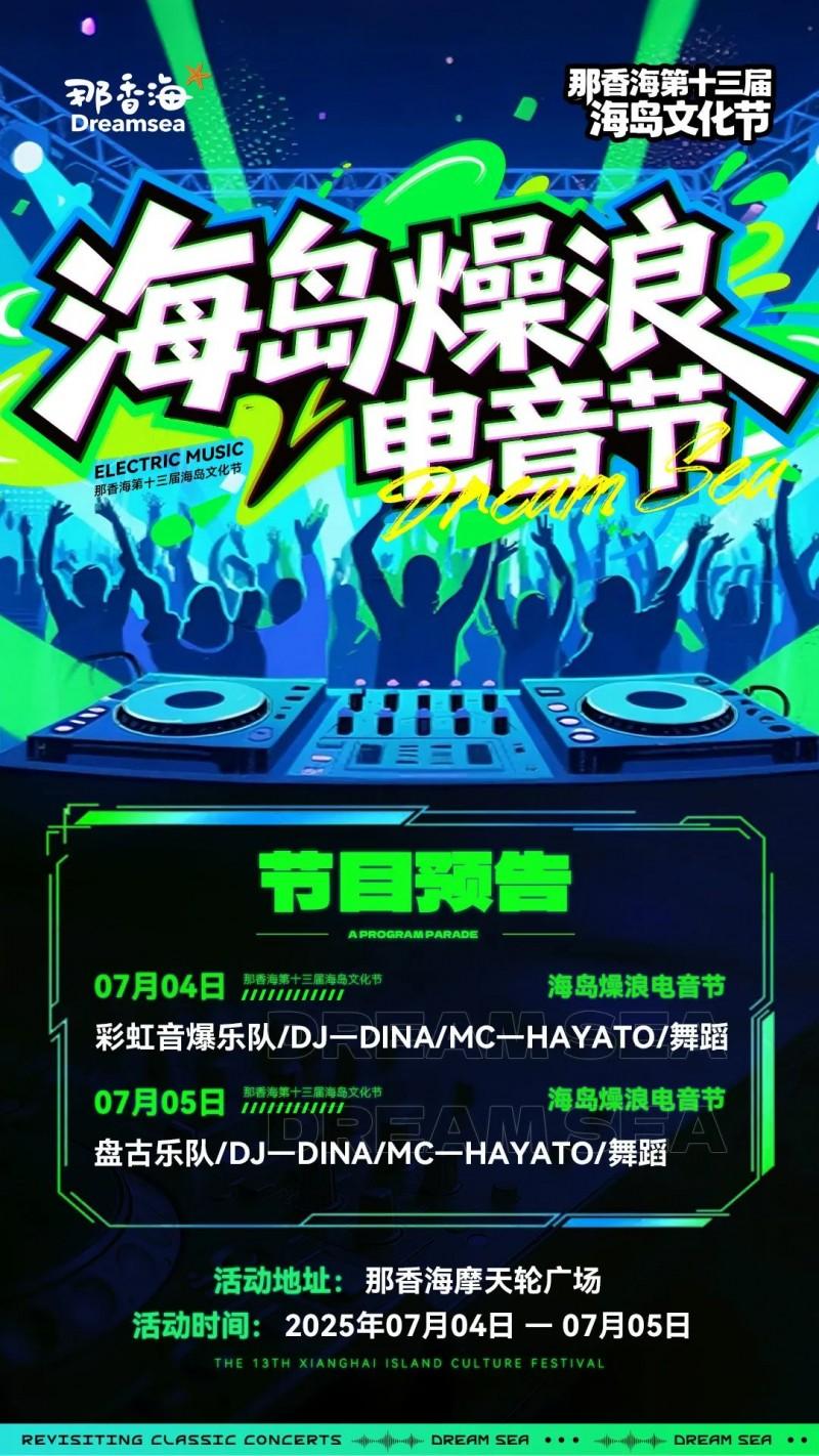 七月海风拂面,浪花奏响节拍,那香海第十三届海岛文化节精彩继续!本届文化节自6月14日启幕,将持续至金秋10月16日,整整四个月的时光,我们以海为幕,精心编织了一场梦幻音乐嘉年华!期待你的身影,成为这片欢乐海洋中最闪耀的浪花。