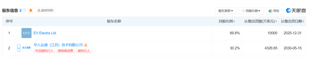 今年5月,江苏高合汽车有限公司正式成立,注册资本约1.43亿美元(约合人民币10.3亿元),标志着高合汽车在经历重整后重启运营。新公司由华人运通(江苏)技术有限公司持股30.2%,EV Electra Ltd.持股69.8%,股权结构显示其已引入海外资本与本土技术方共同主导。