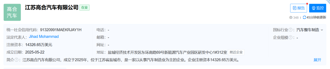 据了解,两家共益债投资人均为盐城市国资控股的地方国企。其中,华人运通目前仍持有共益债投资人江苏悦达汽车集团有限公司15%的股权。江苏悦达汽车集团有限公司从2024年8月起,通过其全资子公司上海悦达智行汽车服务有限公司采购高合汽车零配件,支持高合汽车售后服务。