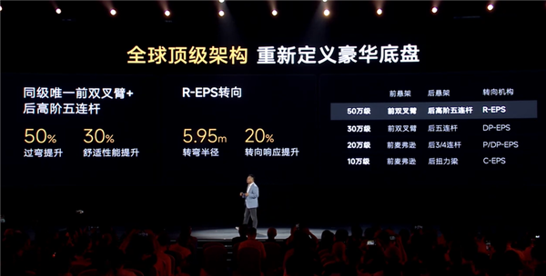 配备CDC主动道路预瞄的AI数字底盘 2.0,每秒可对路况进行千次扫描,实时调整悬挂阻尼力,同时HDS 液压隔振系统的应用,提升了车辆舒适性和静谧性。