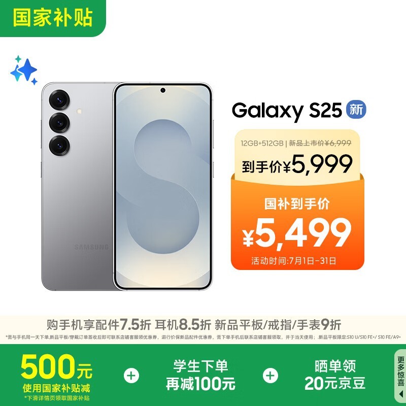 三星Galaxy S25手机12GB+512GB暮河银,京东活动价5151元