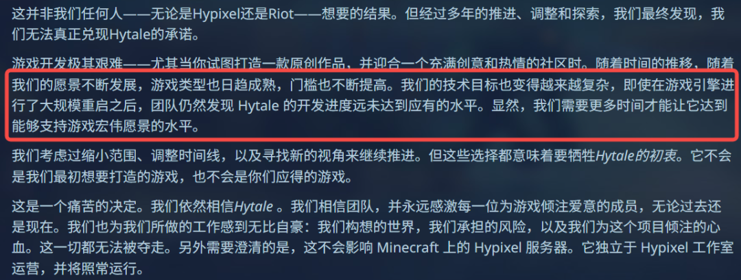 在官方的解释里,《Hytale》被取消的原因概括来说是“预期失控”——技术目标变得愈加复杂,进度远远落后于计划。