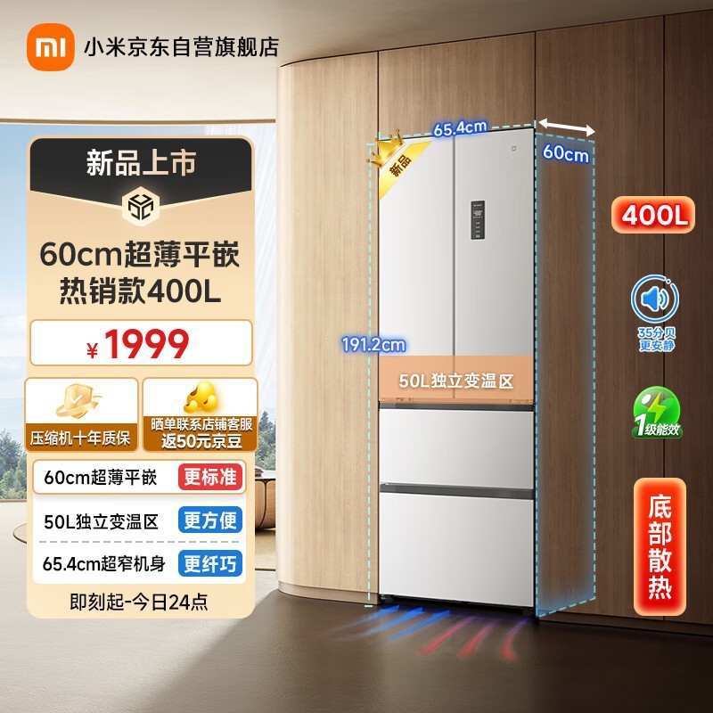 米家400L法式变频冰箱京东特惠1542元