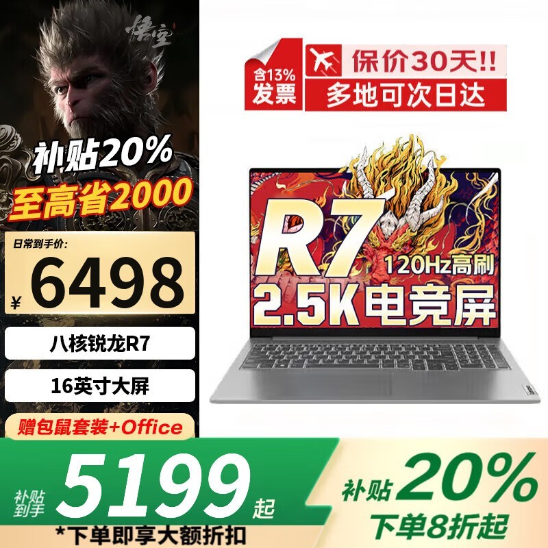 联想拯救者R7000P游戏本京东优惠价5179元