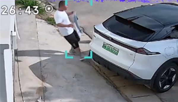 从监控拍摄的画面看,本月4日早上8点多,周先生去挪自家门口停放的一台深蓝SUV(目测是S7)。