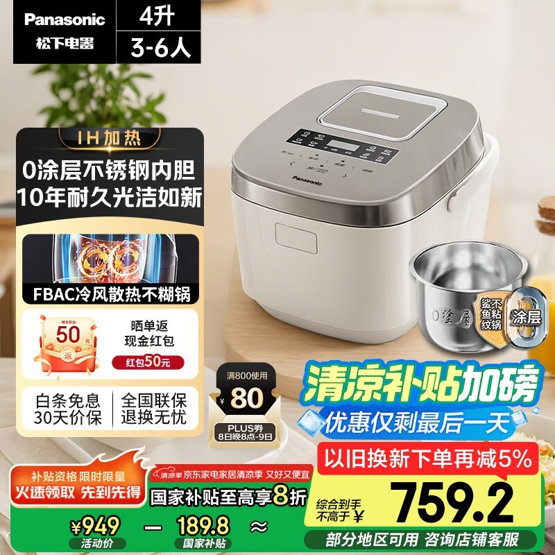 松下0涂层电饭煲IH加热智能家用4升