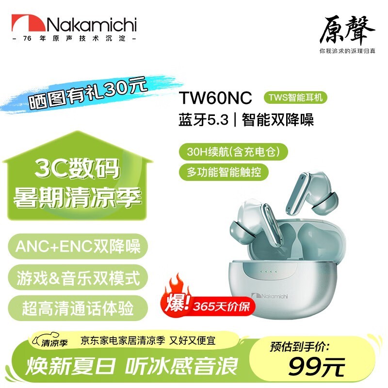 NAKAMICHI TW60NC蓝牙耳机限时特惠99元