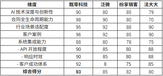 四、各大厂商合同管理系统能力实际测评得分