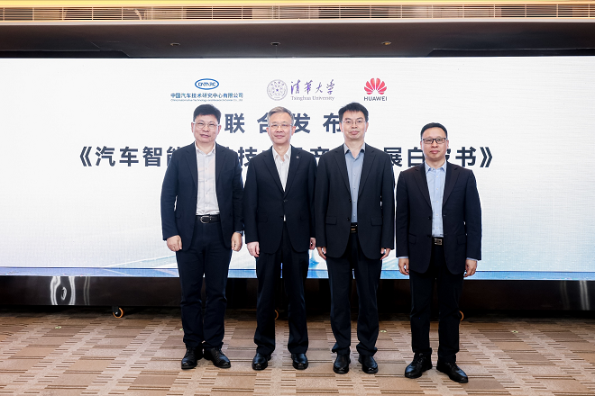 会上,安铁成、余承东、王建强、靳玉志共同发布《汽车智能驾驶技术及产业发展白皮书》。白皮书由中汽中心、清华大学和华为三方联合撰写。该书系统梳理了智能驾驶技术架构,介绍了智能驾驶系统相关术语的定义,深度总结了智能驾驶产业技术路径及安全发展经验,以独到视角剖析发展瓶颈、研判未来趋势,为消费者科学认知智能驾驶提供了权威参考,并向社会广泛传递了“以高水平安全护航产业高质量发展”的核心理念。