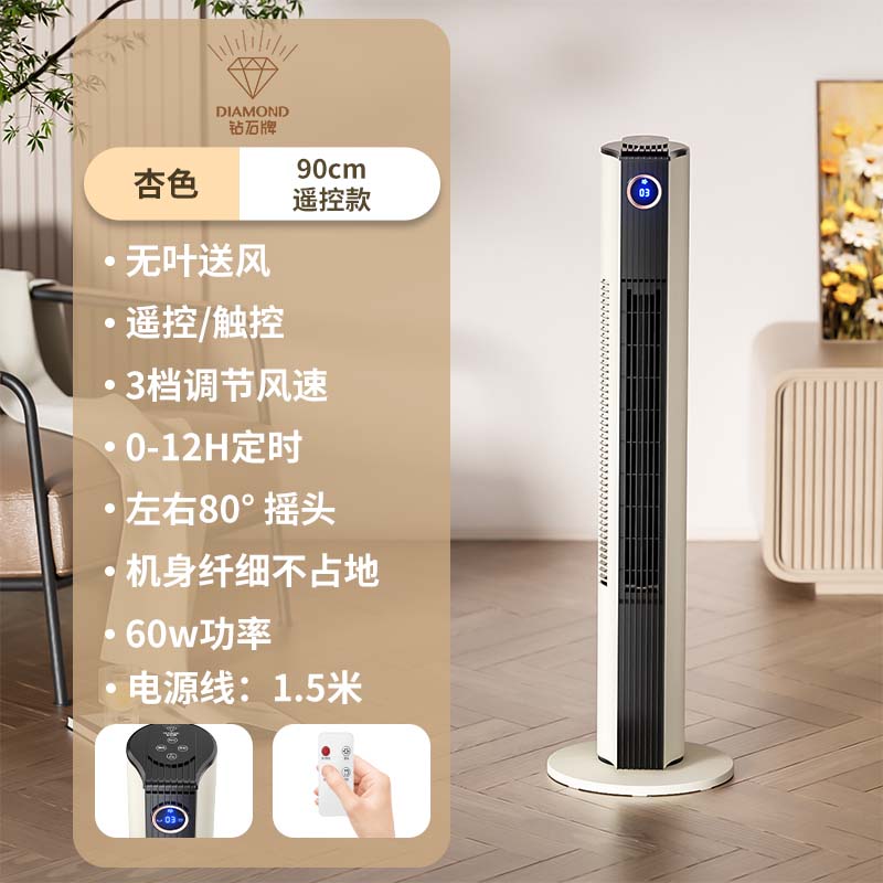 钻石牌无叶塔扇落地扇遥控轻音空气循环扇90cm高