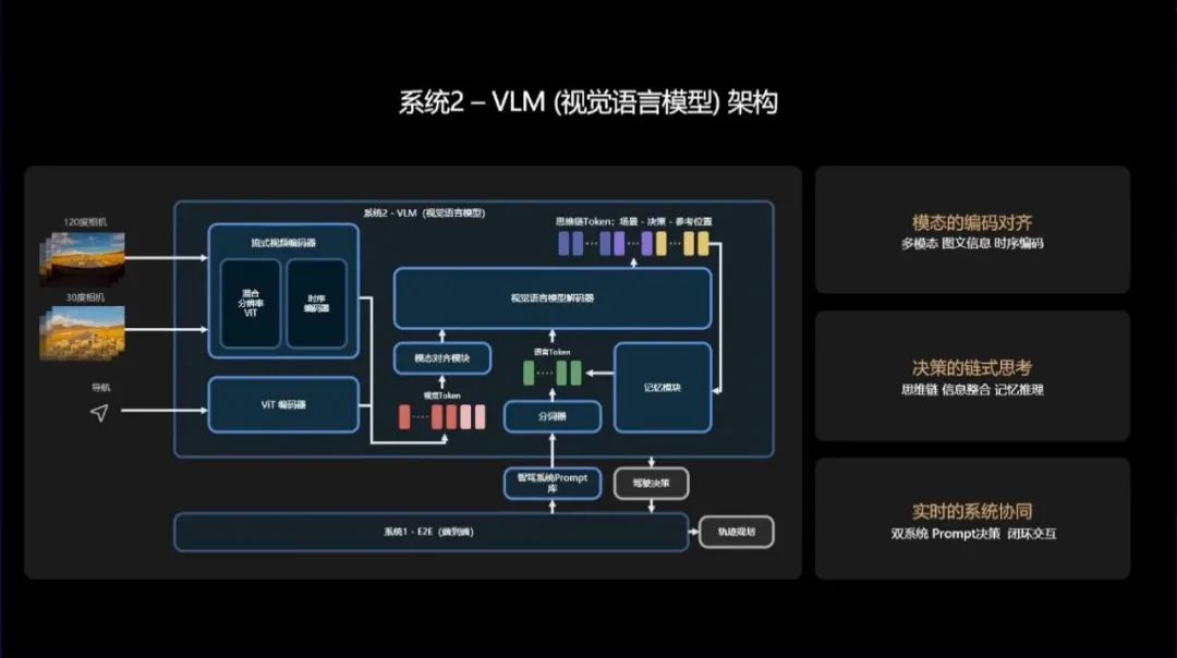 说到在传统端到端方案的基础上引入大语言模型,业界之前其实有过另外一种实践,其代表是理想汽车的双系统方案。24年7月份,理想汽车提出了单颗英伟达Orin X运行端到端方案、单颗Orin X运行视觉语言模型的双系统方案,通过VLM主动思考、理解世界的能力,其双系统方案可以识别公交车道、潮汐车道,能够鉴别复杂的交通标识,在一定程度上具备了只有人类大脑才能具备的交通信息阅读理解能力。
