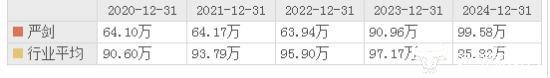值得关注的是,副总经理严剑2024年的薪酬为99.58万元,低于副总经理张久胜的171.9万元。副总经理张佳宁因2024年11月任职,任期未满一年,故未纳入统计。