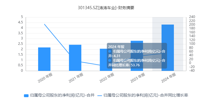近期,涛涛车业(301345.SZ)披露一份超预期的业绩预告,预计2025年上半年归母净利润3.1亿-3.6亿之间,同比增长70.34%-97.81%;扣非净利润3.07亿-3.57亿元,同比增长71.97%-99.96%。