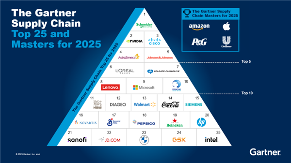供应链管理方面,联想构建了高效灵活的全球供应链体系,在2025年Gartner全球供应链Top 25榜单中位居第八,较去年提升2位,是唯一入榜的亚太高科技制造企业,也是上榜次数最多的中国企业。