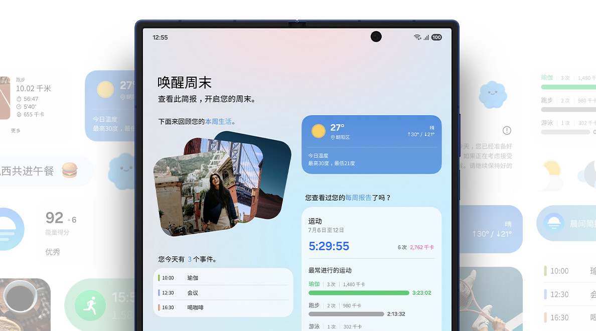 · 即时简报提供了更具个性化的每日信息推送,涵盖路况、提醒、快递、热榜、日程和健身总结等。系统会整合三星健康与Galaxy Watch的心率、步数等健康数据,实现对运动与健康信息的从容掌握,还会在预订差旅航班后提供生活指数、穿衣建议、航班动态、流量推荐、汇率换算等贴心服务。
