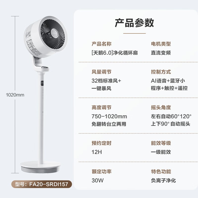 艾美特空气循环扇FA20-SRDI157限时特惠371元