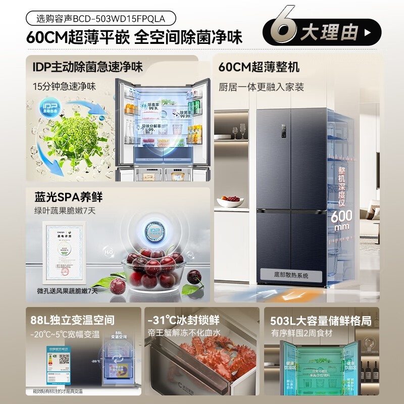 容声BCD-503WD15FPQLA灰电冰箱大容量家用节能低价