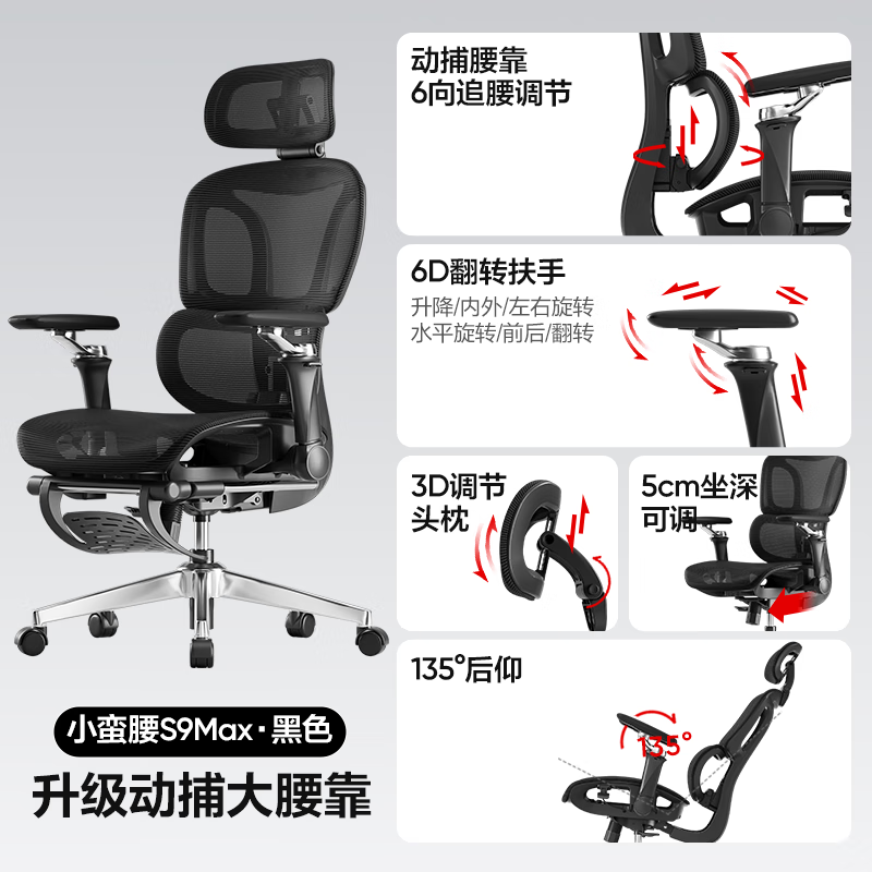 网易严选S9 Max黑色有搁脚电脑椅京东优惠