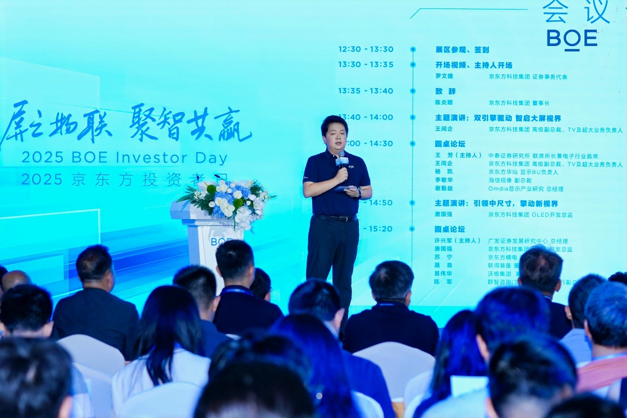 2025年7月8日,京东方(A股:000725;B股:200725)在上海举办“屏之物联 聚智共赢”2025 BOE Investor Day主题活动,京东方董事长陈炎顺,京东方副董事长、京东方精电执行董事兼主席高文宝,京东方华灿董事长张兆洪等3家上市公司掌舵人齐聚上海,与投资者、产业伙伴等从技术、市场、产业链协同等维度共话发展蓝图。BOE(京东方)向投资者全面介绍了“屏之物联”战略下企业发展亮点,“第N曲线”代表——钙钛矿光伏业务也首度亮相资本市场。活动旨在向投资者传递BOE(京东方)核心成长逻辑,促进公司产业价值与资本市场价值统一。