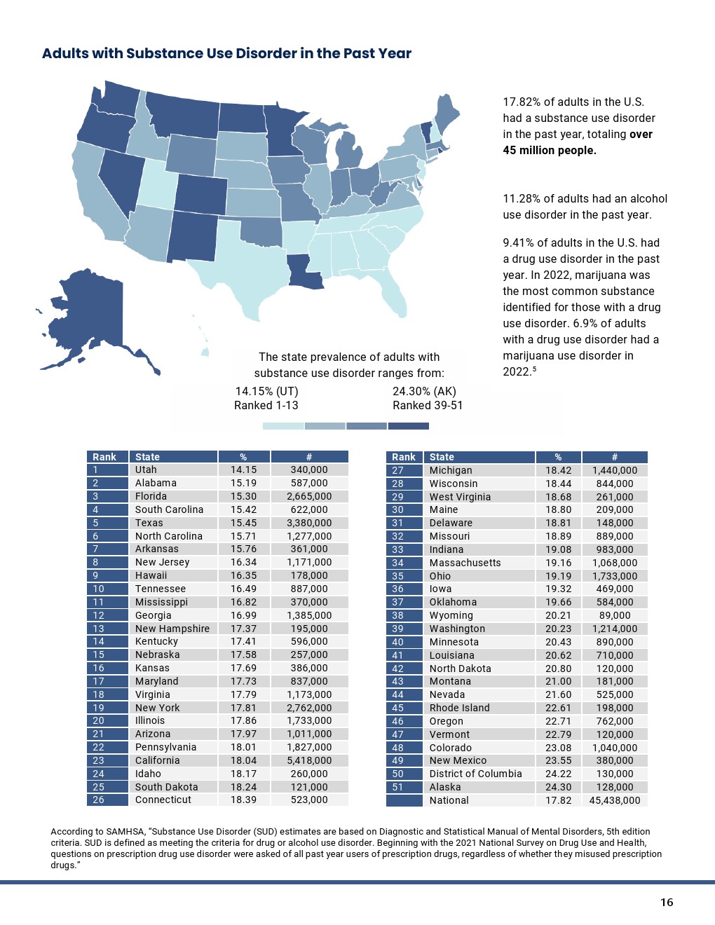 • 18%的美国成人过去一年患有SUD,其中77%未接受治疗