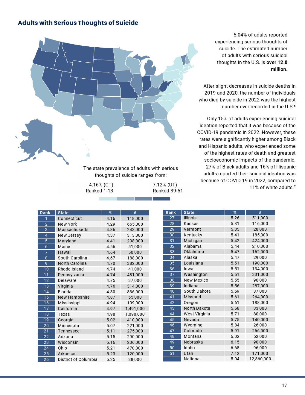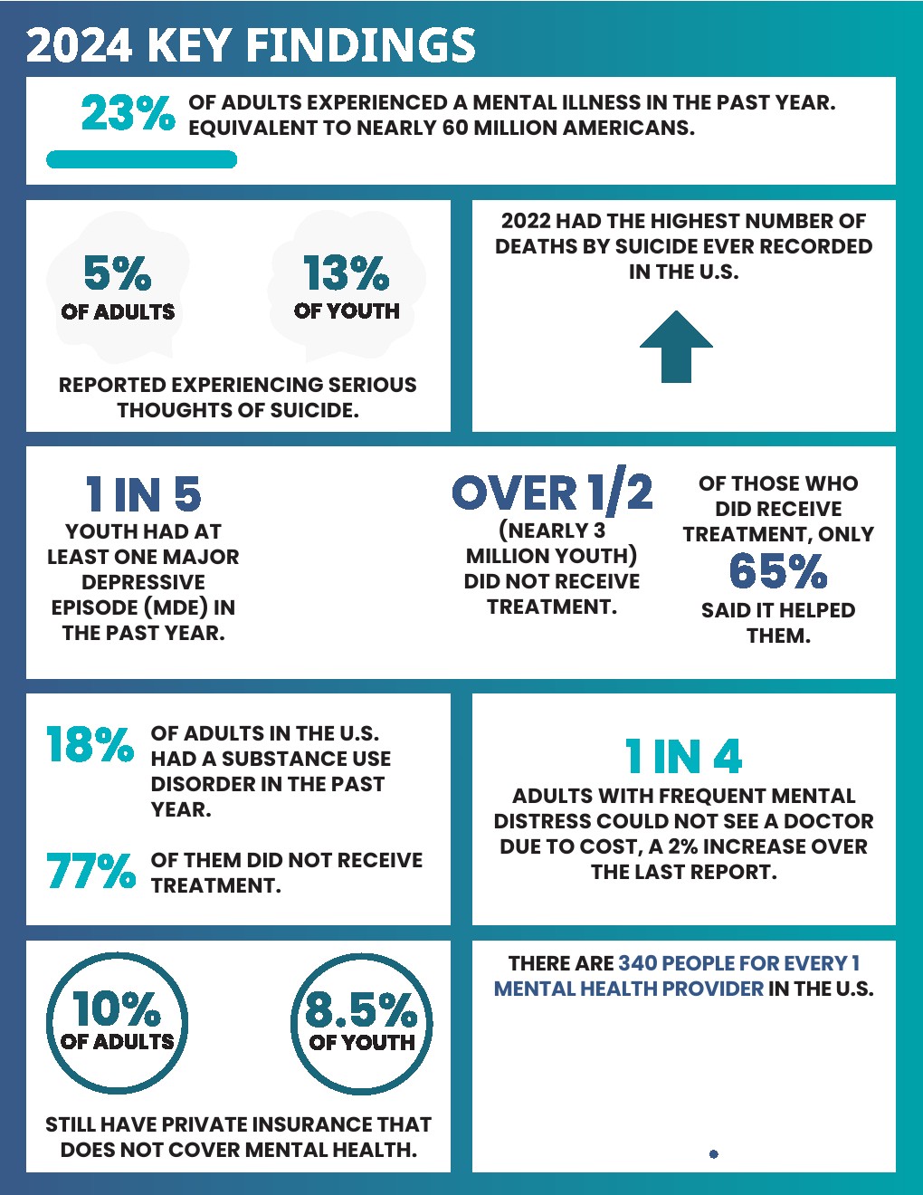 • 23%的成人(近6000万美国人)过去一年经历过精神疾病