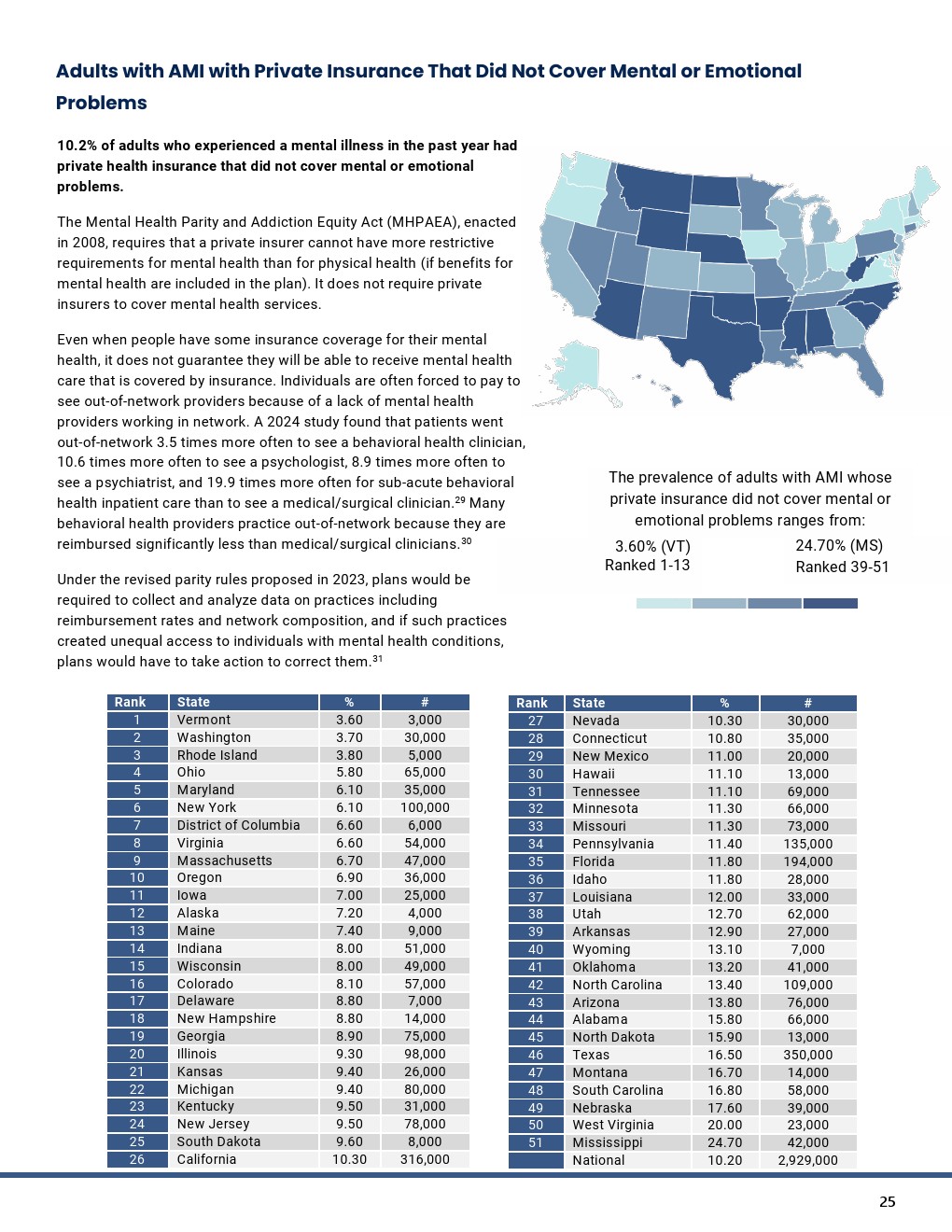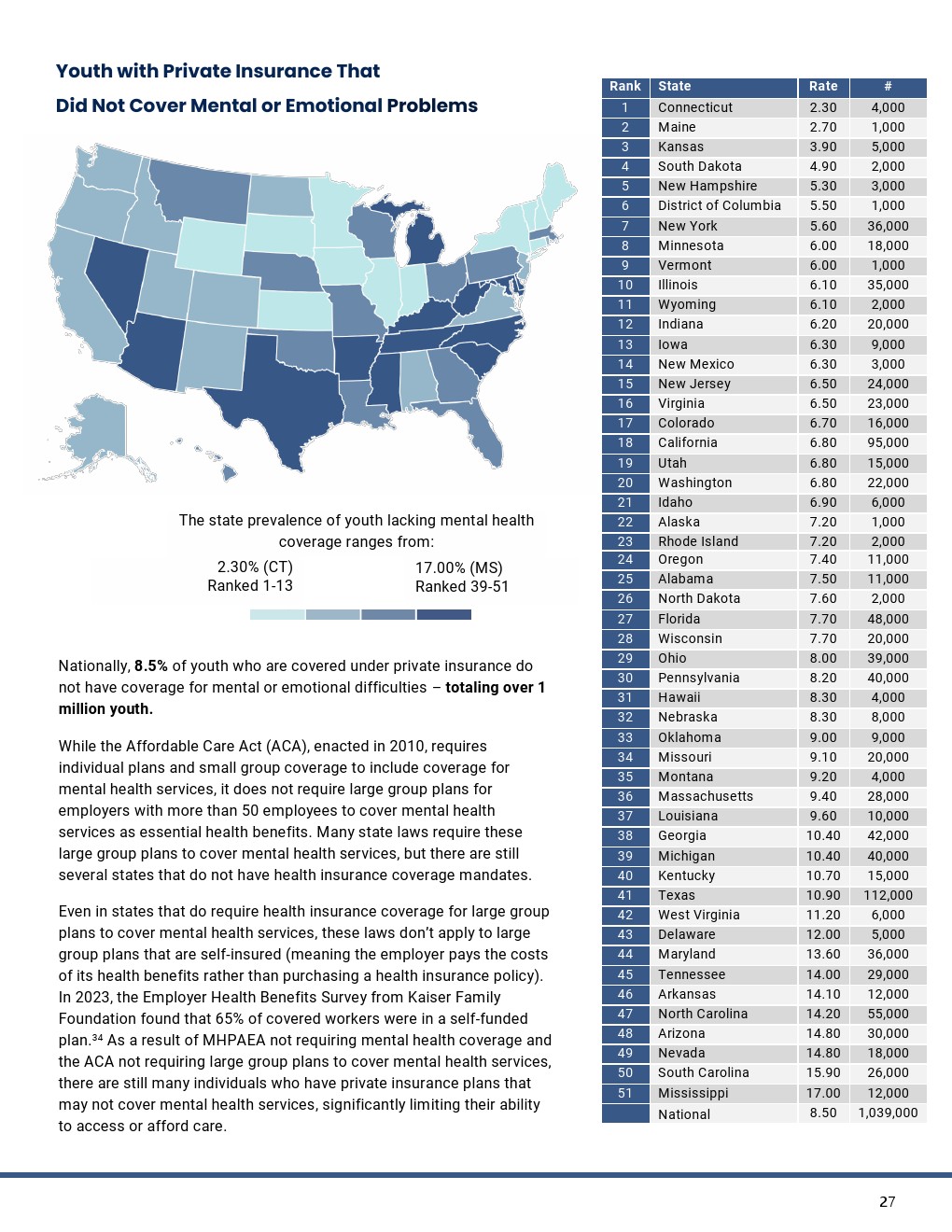 • 仍持有不涵盖心理健康的私人保险比例:成人10% vs 青少年8.5%