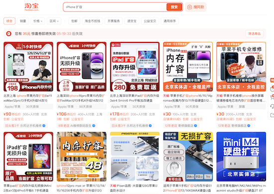 尤其是对于存储空间溢价不菲的苹果产品,存储空间的扩充已经成为很多维修商家的必备服务技能,一台起始存储容量的手机,用户花上几百元就能获得顶配的存储空间。这一情况,在笔记本、平板类的产品中,甚至更加能够激发起用户“简单升级,再战三年”的意愿。