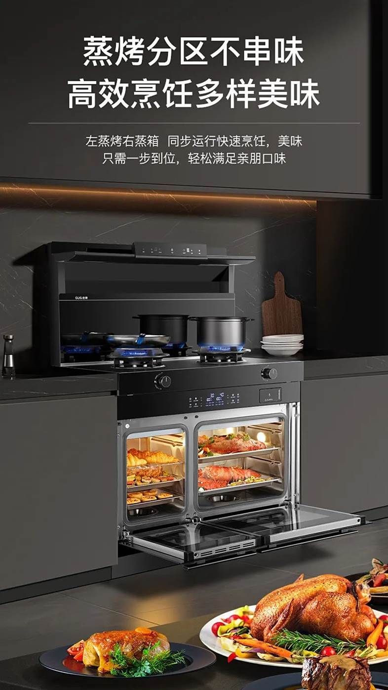 佳歌A3DZK双蒸一烤集成灶,左右独立蒸烤可同步速烹,精准控温、互不串味,还省时易操作;逢年过节多人聚餐时,也能轻松搞定一桌菜,提高烹饪效率。