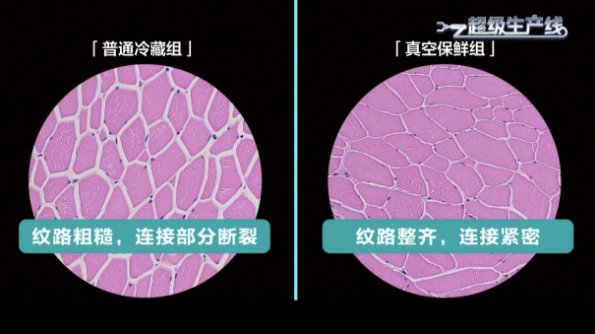 为让央视体验官深度感受真空分子级保鲜的强大实力,海信工程师现场做了“牛肉微观细胞实验”。结果发现:真空保鲜7天的牛肉细胞完整度更高,形态饱满充盈,而普通冰箱中的牛肉细胞完整度低,形态干瘪萎缩。这也进一步验证了海信冰箱的真空保鲜技术,确实能对食材实现分子级保鲜。