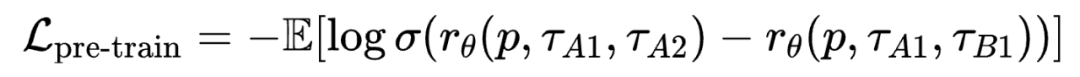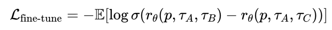 在微调阶段,POLAR 使用少量的偏好数据对齐人类偏好。对于同一个 Prompt,采样三条轨迹,由人工标注偏好顺序。同样使用 Bradley-Terry Loss 进行微调: