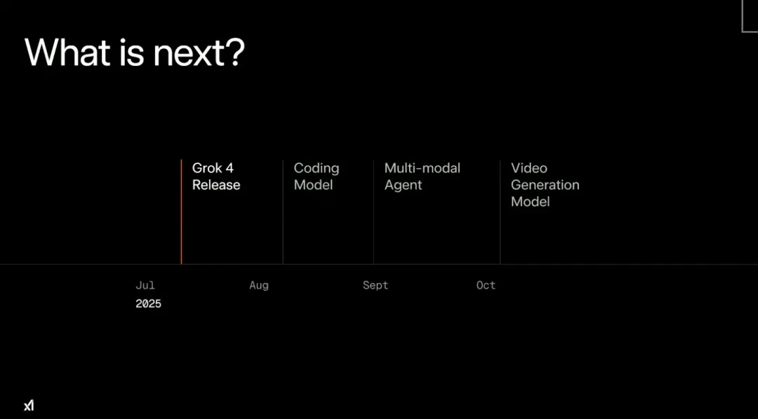 编程和更强大的多模态智能体是xAI接下来的看点。在此次直播中,团队定下目标,在8月发布编程模型,9月发布多智能体,10月发布视频生成模型。不过,结合此前多次的延期,这个时间点是否靠谱还需要打个问号。