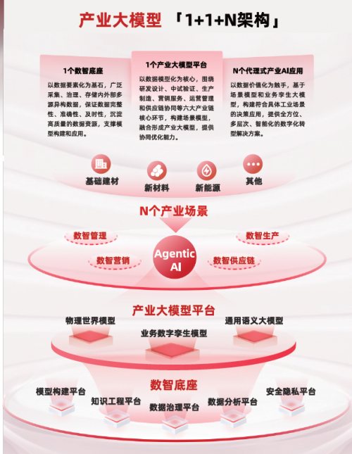中国建材股份有限公司党委委员、副总裁,数智建材研究院董事长 薛忠民薛忠民在主旨报告中指出,中国建材近年来启动数字化转型,成立安徽数智建材研究院,以“1+1+N”核心架构成功研发了建材产业大模型1.0“晓妙”。该大模型通过融合数据模型、机理模型、业务模型和领域知识库,并引入通用语义大模型、多模态和代理式AI架构,成功打造了赋能业务场景的企业级智能决策平台,实现了生产运营供应链、生产、营销的实时协同模型闭环和生产侧端到端全工序实时自动闭环。该模型实现了三大核心技术创新,包括时序数据与工业机理融合、多模态场景协同及决策容错模型,助力人工智能在制造业实时、安全闭环执行,创造可量化价值。