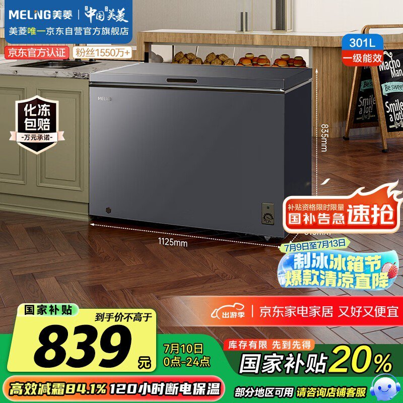 美菱301升低霜冰柜一级能效限时特惠