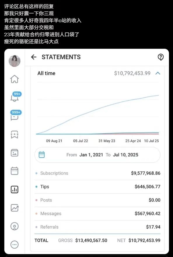 自打接手后,这人就给OnlyFans立了个规矩:用户付的钱,80%直接给创作者,平台只拿20%,你要是拉新入驻,还能拿推荐分成。