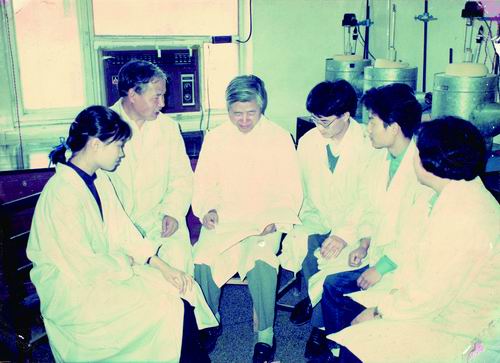 蒋民华(左三)指导学生。