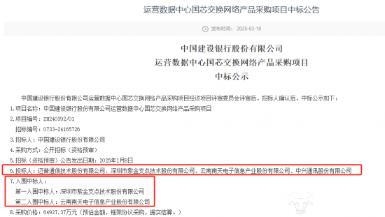 值得一提的是,今年一月份,建行曾发布过同类产品采购项目,也是运营数据中心国芯交换网络产品采购项目,当时是选取两名中标人,最终紫金支点、南天信息成功中选。