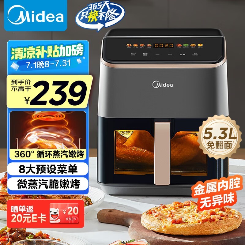 美的MF - KZC539J5空气炸锅,优惠后148元